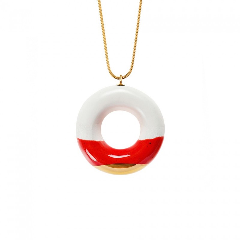 Milky Doughnut Pendant Necklace with Strawberry and Gold Glaze